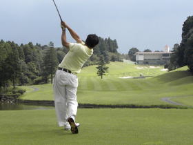 試合写真男子・勝者のスイング 2009年8月24日(月)成田東カントリークラブ